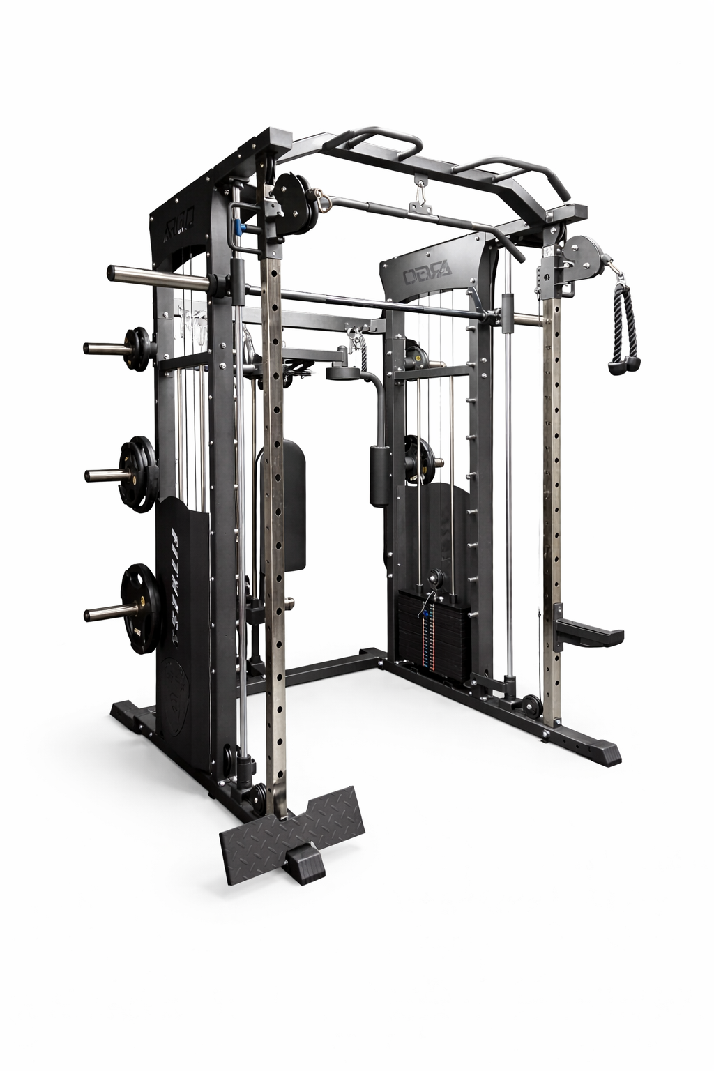 The integrated fly (pec fly / rear delt) attachment allows for targeted chest and shoulder isolation, giving users the ability to perform smooth, controlled fly movements without needing separate machines. Combined with the smith bar system and multiple cable stations, this unit supports a wide range of exercises—from heavy compound lifts to precise isolation training.